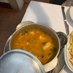 A caldeirada de marisco é enorme para uma pessoa, dá para duas pessoas. Pode experimentar o bacalhau à portuguesa, que é bastante singular, mas ambos são um pouco salgados. O serviço neste restaurante é confuso, mas é bom e as pessoas são muito educado. No início serão dados 3 lanches e pão. Você pode pedir ao pessoal de serviço para devolvê-los. Por fim, será servido vinho tinto e sobremesas. Este vinho tinto é muito delicioso... Depois de beber, eu quero para comprá-lo de volta.