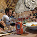 Apesar de termos chegado perto da hora de fechar conseguimos comer, talvez por isso não demoraram tanto para nos servir. Pizzas muito boas. Agora, 2,50€ por uma garrafa de litro e meio servida em plástico do supermercado que custa 30 cêntimos é um assalto à mão armada