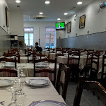 O local é um pouco estreito por dentro, mas com muitas mesas lá fora, pessoal acolhedor, tivemos uma mariscada especial para dois, um prato com uma fantasia de crustáceos, camarões, caranguejos, moluscos, uma bandeja de camarões assados, uma bandeja de camarões grelhados , fartura para dois paguei 65 euros, tive que provar o bacalhau, ato de dever cumprido, comi assado aqui, porção para duas pessoas 18 euros, bom. Menu infantil com batata frita, costeleta e ovo estrelado 10 euros. Preço médio dos cursos 20-25 euros.