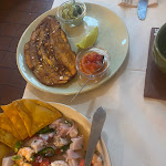 Eles têm um menu giratório que eu aprecio. Os bolinhos de bacalhau estavam maravilhosos assim como a banana frita. O melhor foi um gaspacho branco que simplesmente nos surpreendeu de tão bom. Sanduíche de peixe frito era bom, mas nada de especial. Bom serviço e bom ambiente.