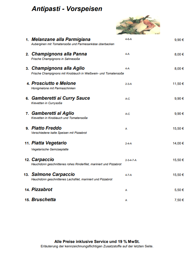 💬 Les pizzas sont grandes et savoureuses, malheureusement un peu grasses - de sorte que la base, en fait parfaitement fine, devient assez rapidement détrempée. Les spaghettis aglio e olio appréciaient également un bain d'huile, mais étaient loin d'être savoureux. Les temps d'attente étaient aujourd'hui plus longs que la moyenne, mais cela est dû au nombre élevé de visiteurs. Sinon, le service était sympathique et essayait de garder un œil sur toutes les tables de l'espace extérieur - mais cela ne fonctionnait souvent qu'à moitié. La crème brûlée était bonne, mais à 6,50 €, c'était un peu trop cher. Malgré de petites critiques, le restaurant est définitivement recommandé.
