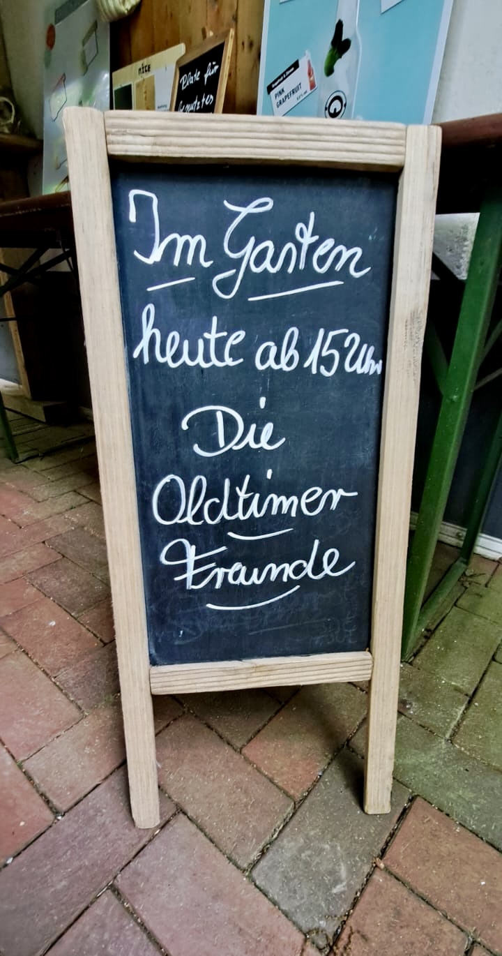 💬 Je suis allé « au vélo » pour le déjeuner aujourd'hui Parking devant la porte, à la Volksbank ou sur une place de gravier à côté. Aucun paiement par carte possible ! Sièges intérieurs et extérieurs avec parasols. Ambiance de snack-bar classique. Commandez au comptoir ou à la fenêtre. L'employé était très sympathique, a apporté des boissons et de la nourriture à table et les aurait probablement récupérés ;-) La nourriture était à table assez rapidement. Le Cordon Bleu (avec sauce à la crème) était malheureusement très gérable. Très grosse portion de frites croustillantes avec une bonne cuillerée de mayonnaise. Avec 0,5l Cola = 10,80€uro Très bon rapport qualité prix bonne restauration rapide/plats à emporter.