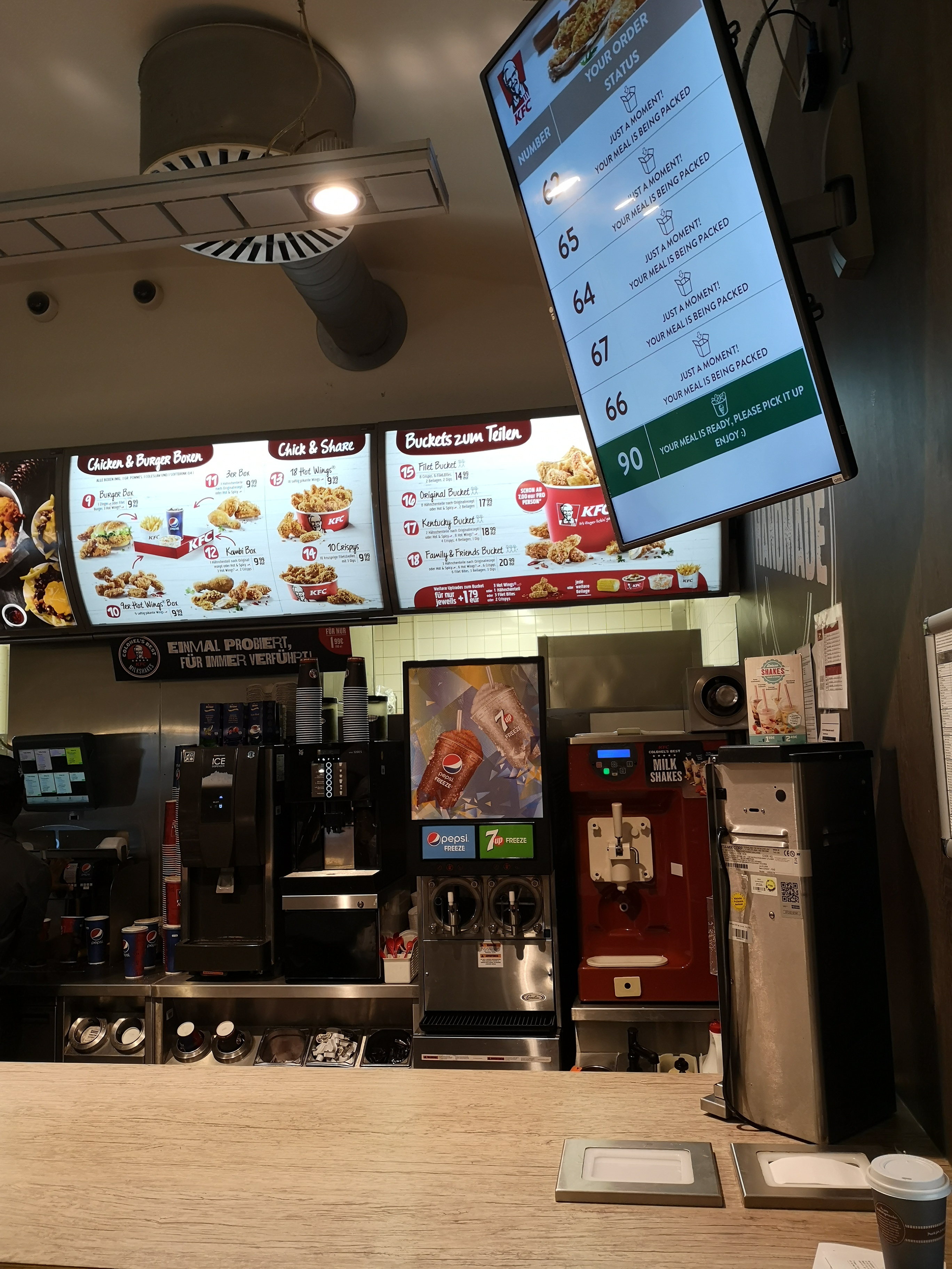 💬 Il n'y a pas de distributeur automatique de commande, vous devez commander à la caisse. Cola dilué et terriblement insipide. Il y a des toilettes payantes qui n'acceptent pas les cartes.