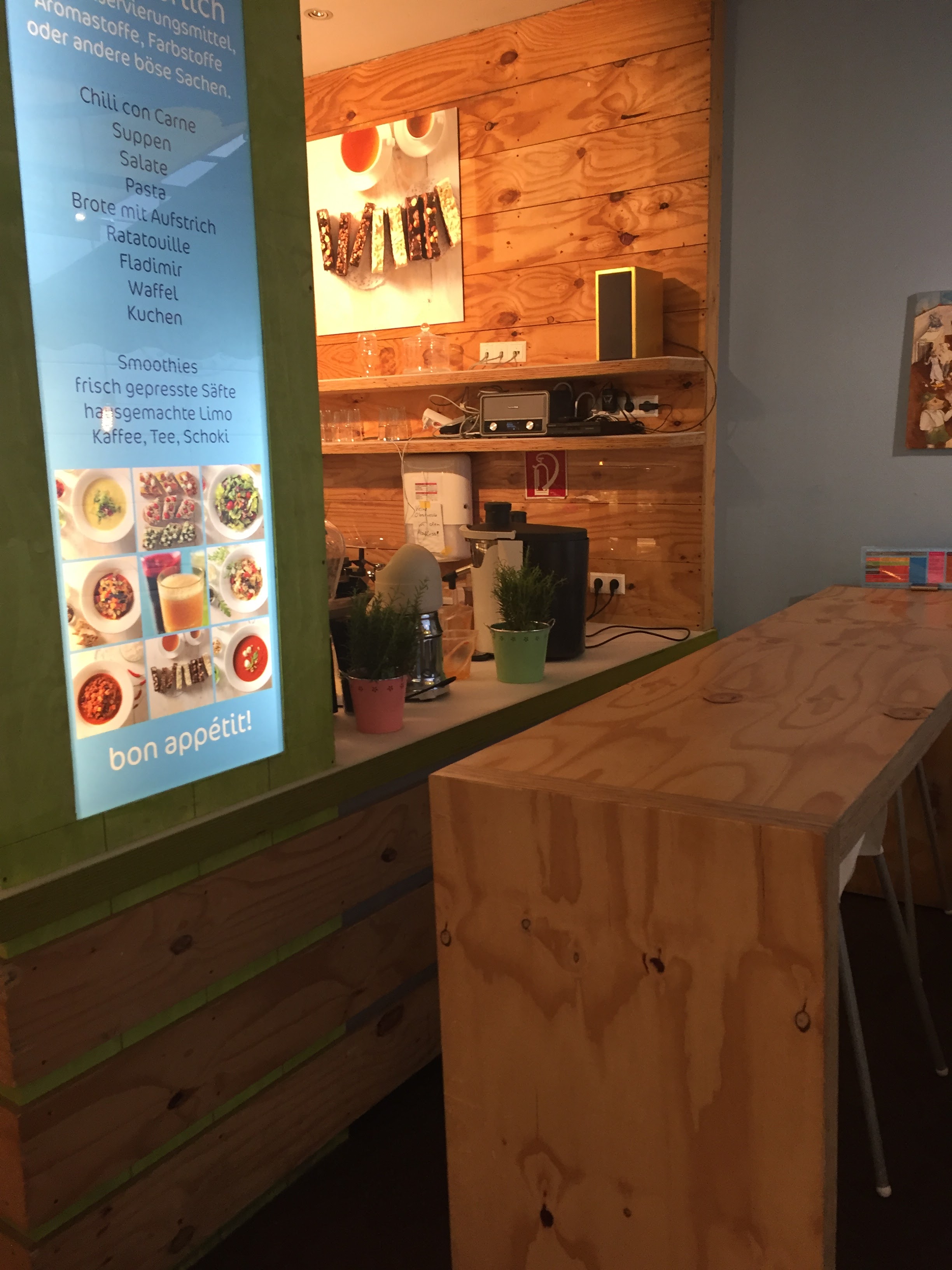 💬 Au début, j'ai pensé à une saucisse au curry. mais 6 euros pour une currywurst ? sans frites... euh... non. puis un hamburger à 6,50 €. Je pensais qu'il y avait quelque chose de vraiment bien là-bas. Malheureusement non. Le chignon était gros comme un Whopper, mais malheureusement la version discounter s'effondre à chaque contact. En plus de cela, 2 tranches de concombre serpent, de la laitue (laitue Lollo bianco et Batavia) et en plus la galette (qui a d'abord été à nouveau frite dans la graisse de la poêle, puis a fini au micro-ondes et était tellement morte et sec que vous avez presque étouffé dessus, le brun brûlé dessus. Photo au dessus de la salade Batavia c'est le corps du délit). Viennent ensuite Discounter Mayo et Discounter Cetchup, chacun provenant de la bouteille compressible discounter. La galette est une pièce discounter TK (65 grammes). Donc la taille la plus petite et la moins chère que vous puissiez obtenir dans un magasin discount... Rarement vu quelque chose d'aussi underground. Désolé. Le magasin date des années 70, la nourriture est des années 70, l'homme derrière le comptoir ne connaît que les années 70 parce que c'était son époque. Non, cela ne nécessite certainement pas de répétition, merci