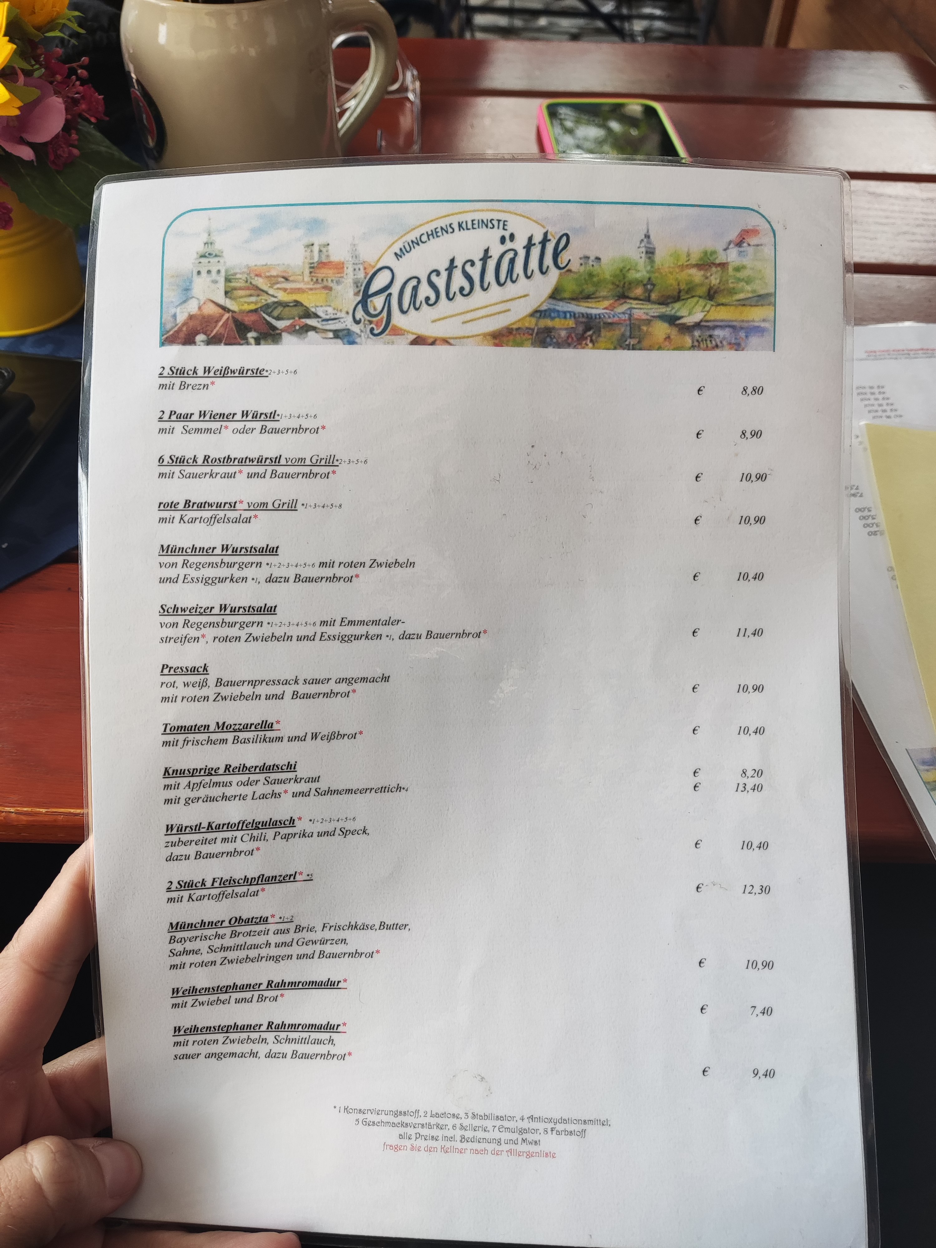 💬 Supers plats typiques bavarois. Ambiance bonne enfant avec une grande table et bancs pour au moins 20 personnes à partager bien sûr. Il y a aussi des tables de 6 pour les petits groupes. Le personnel est attentif malgré la forte affluence du samedi soir. À ne pas manquer: la Kaiserschmarn servie dans sa poêle (la portion imposante peut être partagée si on la mange en dessert).